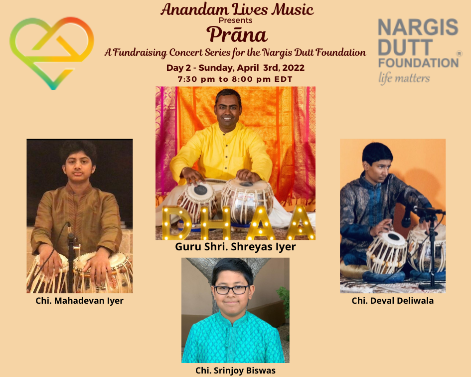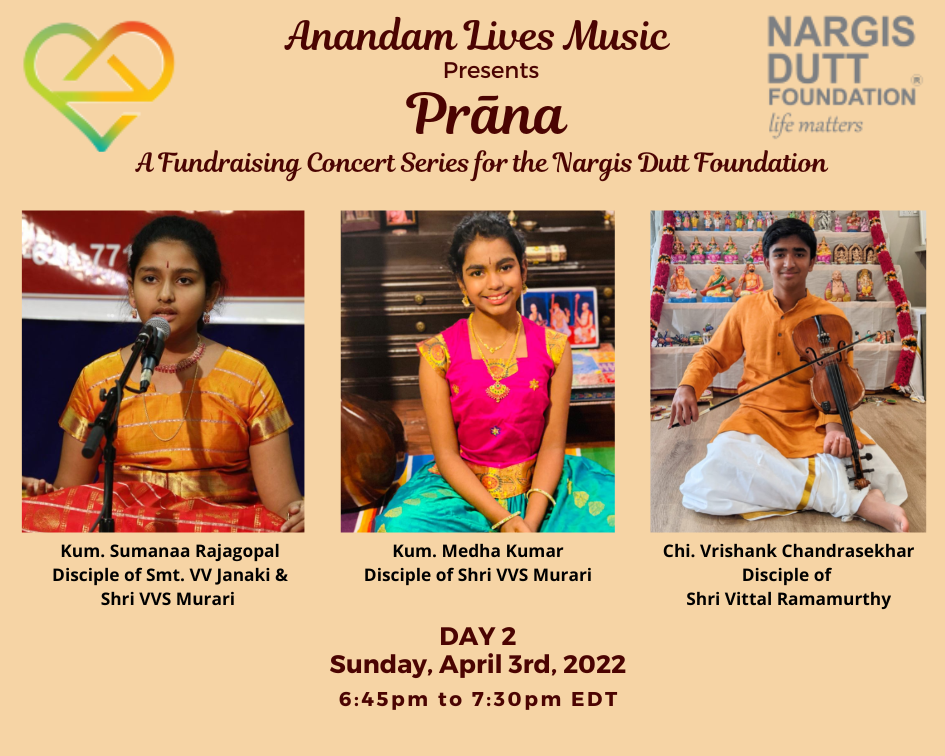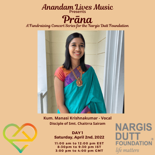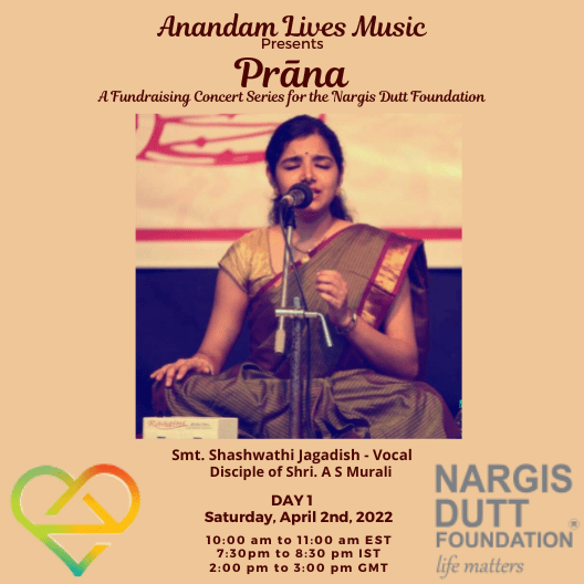 On Saturday, April 2nd and Sunday, April 3rd 2022, Anandam Lives Music is hosting Prāṇa, a fundraising concert series for the Nargis Dutt Foundation, to raise funds for cancer patients in need of immediate medical treatment and care. With your help, we look forward to surpassing the conservative goal we have set – $10,000 to fund essential medical support for cancer patients in need. What a joy to open our hearts and share our blessings with others who so desperately are in need of medical care. This concert will not be possible without the loving contribution of time and talent by our 12 artists, to whom we are eternally grateful. Thank you for your support and generosity!